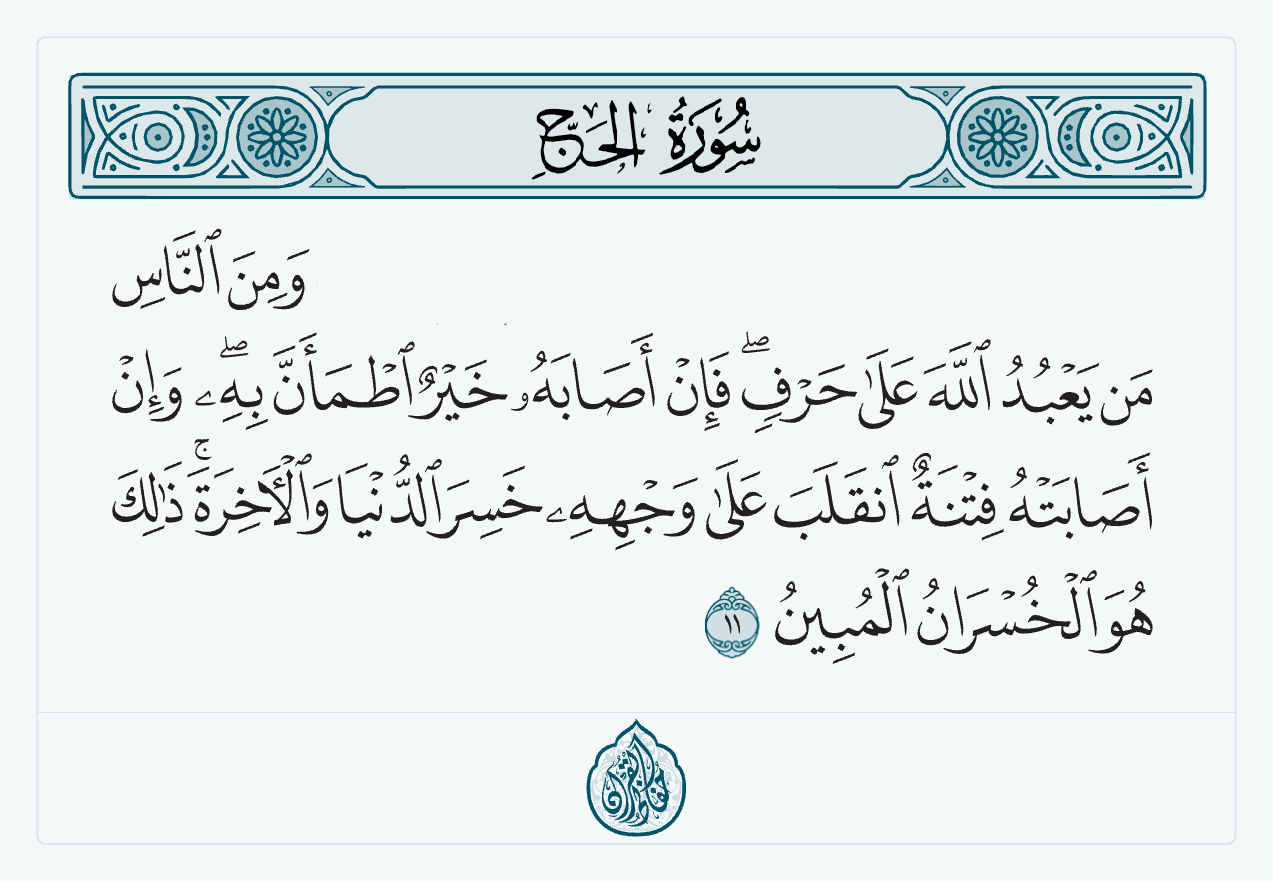 ثم فكرت أن الابتلاء هو الميزان الحق، لمعرفة أني أعبد الله على حرف، أم عبده مخلصًا له الدين. هل سأنقلب على وجهي وأخسر الدنيا إن أصابتني فتنة، أم سأصبر وأتجلد وأؤمن أن هذا من عند الله، ليبلوني أأشكر أم أكفر؟